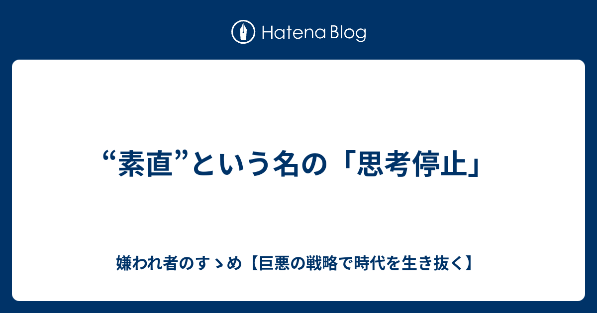 素直 という名の 思考停止 嫌われ者のすゝめ 巨悪の戦略で時代を生き抜く