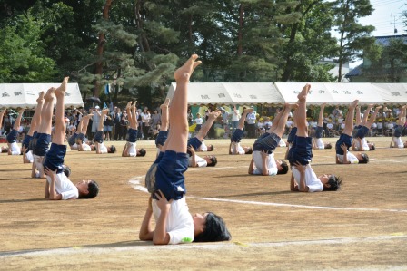 組体操 一人の技を練習 永治小学校生活