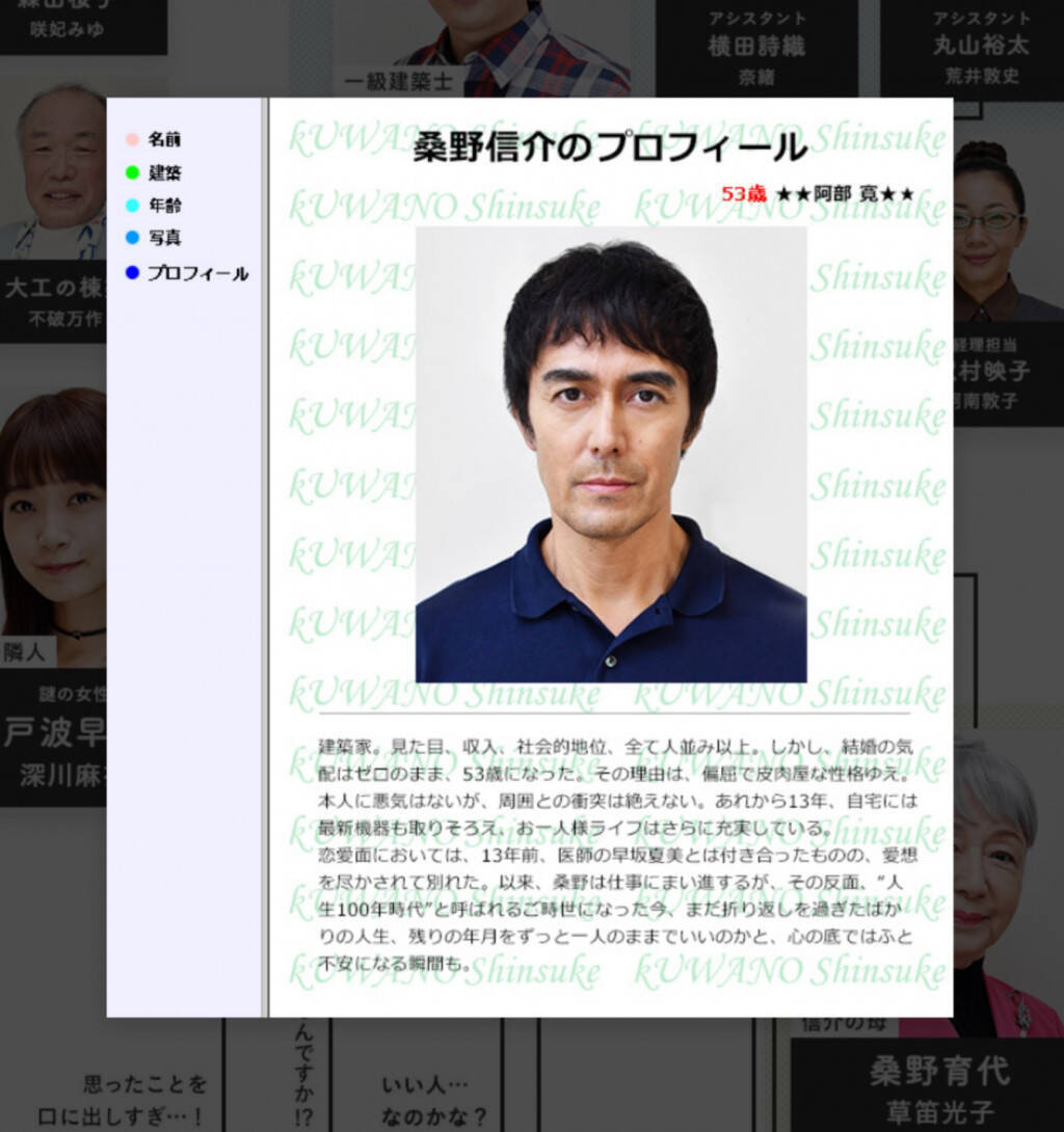 阿部寛主演 まだ結婚できない男 公式サイトの人物紹介で阿部寛だけなぜか 阿部寛のホームページ 風で 完全に分かってる と話題に ねとらぼ