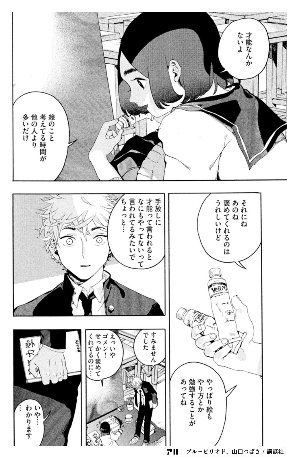 才能なんかないよそれにね褒めてくれるのはうれしいけどやっぱり絵もやり方とか勉強することがtera手放しに才能って言われるとなにもやってないって 一言われてるみたいでちょっと すみませんでしたゴメン せっかく褒めてくれてるのに 考えてる時間が他の人より多いだけ