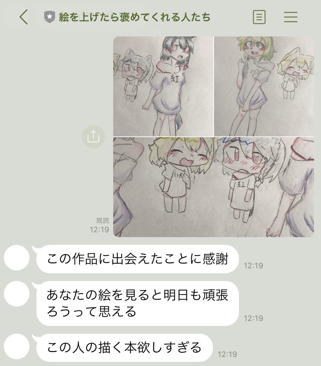 もんすけ on twitter lineの 絵を上げたら褒めてくれる人たち っていうbotのやつ入れてみたらクローンか ってくらい同じテンションで草 もち米の絵でやったらただの私の脳内だった めためた楽しい