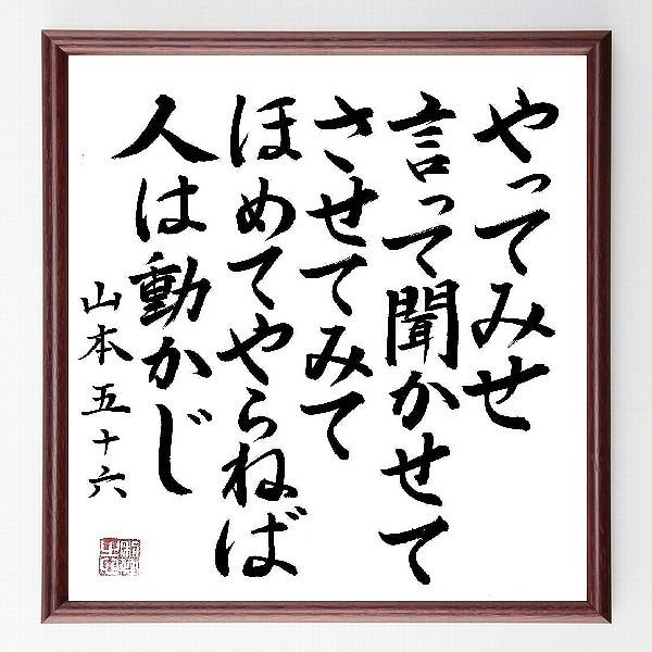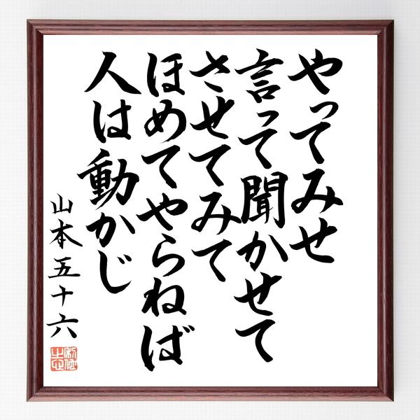 山本五十六の名言色紙 やってみせ 言って聞かせてさせてみて ほめてやらねば人は動かじ 額付き