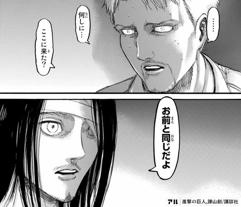 進撃の巨人132話ネタバレ ハンジ死亡 フロック死亡 アニとアルミン離れ離れ ワンピース考察 甲塚誓ノ介のいい芝居してますね
