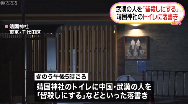 靖国神社惊现 杀光武汉人 涂鸦 日网友 尽快抓住嫌犯 国际 蛋蛋赞