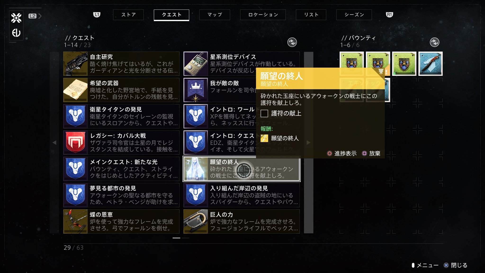 destiny 2 プレイ日記581 エキゾチック弓 願望の終人 入手 ミッション 砕かれた玉座 destiny 2 ps4