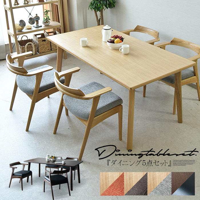 ダイニングテーブルセット 4人用 5点セット テーブル幅150cm チェア4脚 無垢材テーブル デザインチェア