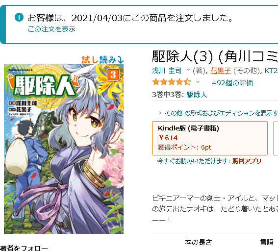 漫画 駆除人 最新刊4巻の発売日情報