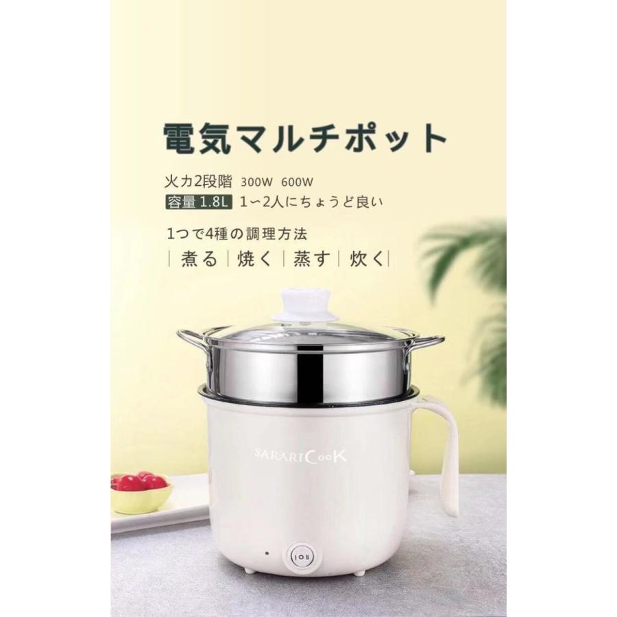 電気マルチポット 1人鍋 おしゃれ 電気鍋 ラーメン鍋 火力2段階 蒸し器付き マルチ電気クッキングケトル ポット 鍋 調理 ケトル