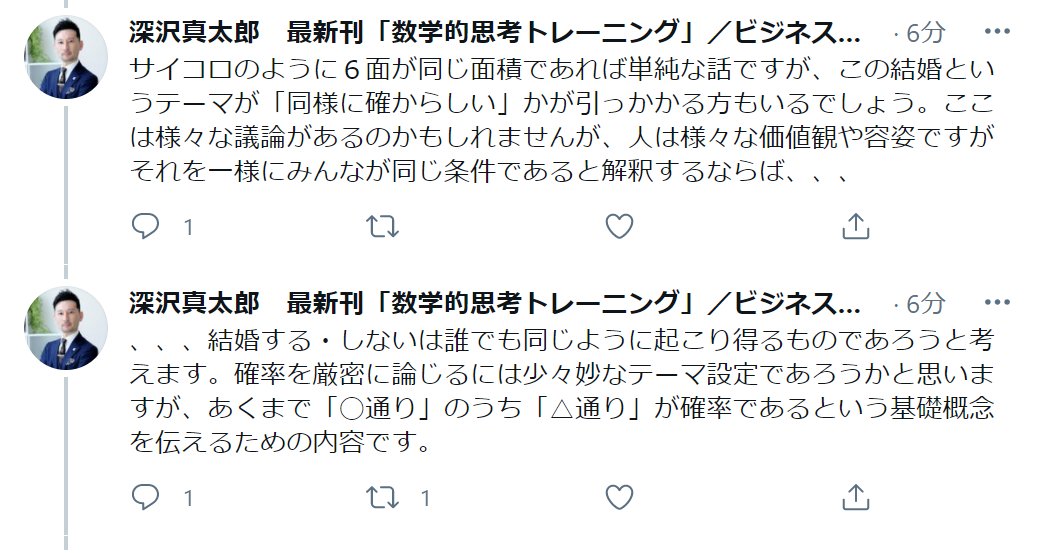 積分定数 on twitter 無作為に20代女性を選んで その人が結婚することになる確率は という想定であれば どの人も結婚できる確率は等しい と仮定したのと同様のことになります ではこれによって確率は1 2になるでしょうか 続く