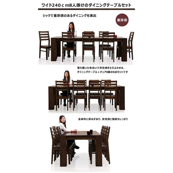 amazon ダイニングセット ダイニングテーブルセット 9点セット 8人掛け テーブル幅240cm ハイバック 座面 ファブリック 布 北欧 モダン おしゃれ 人気 大きめ 大人数 大家族 食卓テーブルセット ブラウン ダイニングセット オンライン通販